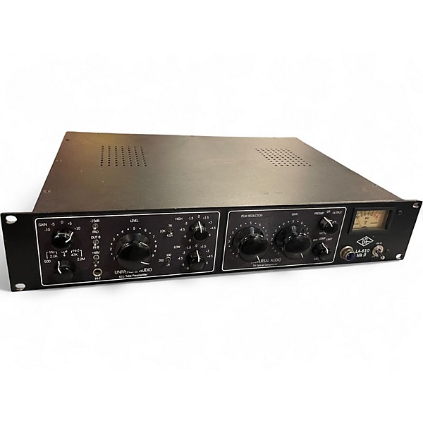 Used Universal Audio LA610 MKII Channel Strip in good condition, combining a classic tube mic preamp with the legendary LA-2A-style optical compressor for warm, vintage tone. Features a 610-tube preamp, EQ section, and customizable compression controls. Ideal for vocals, instruments, and tracking with analog character. Offers line, mic, and Hi-Z inputs, with VU metering and gain-stage flexibility. Great choice for studios seeking iconic sound and reliable performance in one versatile rack-mounted unit.
