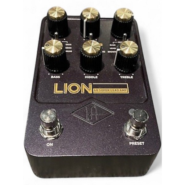 Used Universal Audio Lion '68 Super Lead Effect Processor in great condition, delivering classic British amp tones with authentic tube-style saturation. This high-quality amp emulator features dual gain stages, built-in cabinet modeling, and stereo outputs, making it ideal for studio or stage use. Compatible with UAFX systems, it captures the essence of a late-'60s Super Lead head with rich harmonics and dynamic response. A perfect choice for guitarists seeking vintage lead tones with modern reliability.