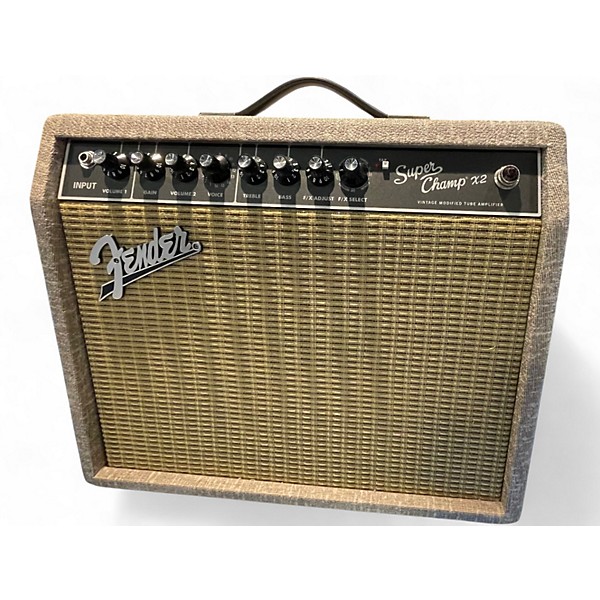 Used 2017 Fender Super Champ X2 guitar combo amp in great condition, delivering classic Fender tone with modern versatility. This 15-watt, all-tube power section (2x6V6, 1x12AX7) drives a punchy 10" speaker, while the built-in digital voicings and effects provide everything from sparkling cleans to rich overdrive. Features two channels, USB connectivity for Fender FUSE editing/recording, and an effects control for quick dialing in great sounds at home, studio, or small gigs.