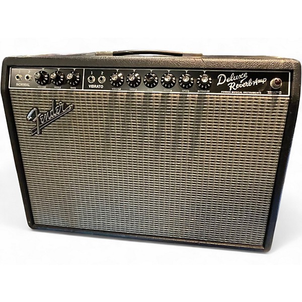 Used 2019 Fender Deluxe Reverb '65 Reissue in good condition, delivering 22 watts of all-tube power through a single 12-inch Jensen C12K speaker. This classic combo amp features two channels (Normal and Vibrato), tube-driven reverb, and tremolo, offering rich vintage tones ideal for blues, rock, and country. Lightweight with built-in spring reverb and responsive EQ controls, it’s a go-to amp for players seeking iconic Fender clean tones and smooth breakup at moderate volumes.