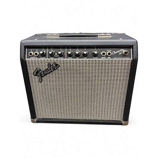 Used Fender Champion 30 guitar power amp in fair condition, offering classic Fender tone in a compact, gig-friendly combo. Rated at 30 watts with a single 10-inch speaker, it features clean and drive channels, a 3-band EQ for shaping your sound, plus onboard reverb for added depth. An ideal grab-and-go amp for practice, rehearsals, or small rooms, with honest cosmetic wear and fully functional performance.