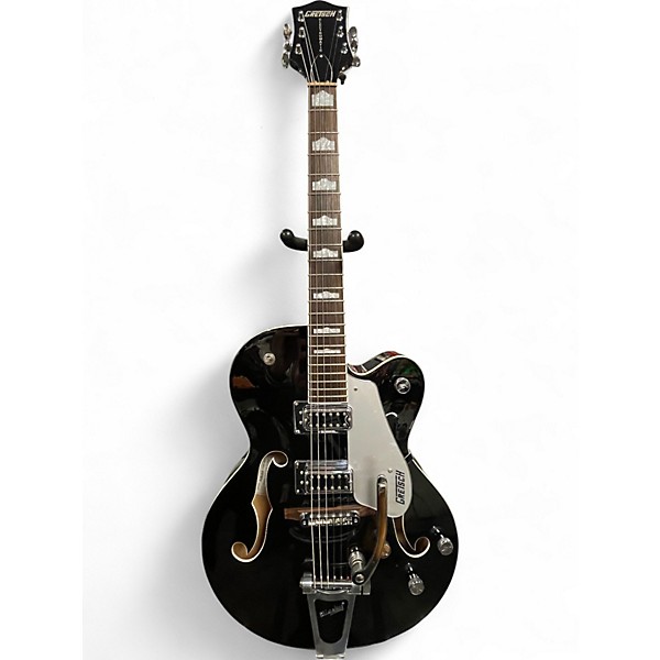 Turn up the classic vibe with this used Gretsch G5420T in sleek black, a full hollow-body electric in good condition built for bold tone and smooth playability. Featuring a maple hollow body, comfortable set neck, dual humbucking pickups, master volume and tone controls, and the signature Bigsby-style tremolo for expressive shimmer, it delivers everything from warm cleans to gritty rockabilly bite with unmistakable Gretsch character.