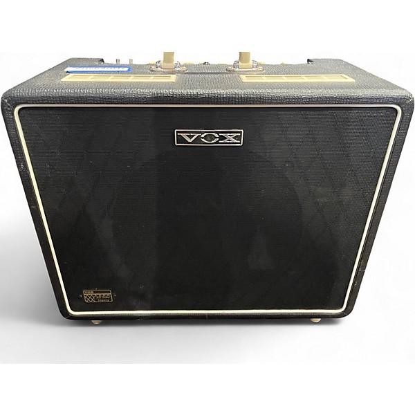 Used VOX NT15C1 Night Train 15W all-tube 1x12 combo amp in Excellent condition, delivering classic VOX chime with punchy British overdrive. Switchable 15W/7.5W output makes it ideal for stage or home, and the 12" speaker provides full, gig-ready projection. Features two footswitchable channels (Bright and Thick), simple EQ controls, and tube-driven feel with dynamic response—perfect for everything from sparkling cleans to saturated rock tones.