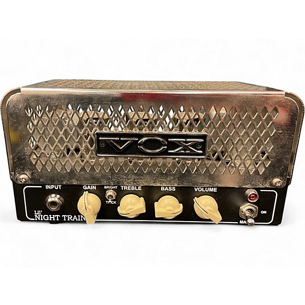 Used VOX NT2H Night Train 2W Tube Guitar Amp Head in good condition, delivering classic VOX chime and gritty British overdrive in a compact, gig-friendly package. This all-tube head features 2 watts of power, a 12AX7 preamp tube, a 12AU7 power tube, and an 8/16-ohm speaker output for easy cab pairing. Simple controls make it quick to dial in sparkling cleans or punchy crunch at reasonable volumes.