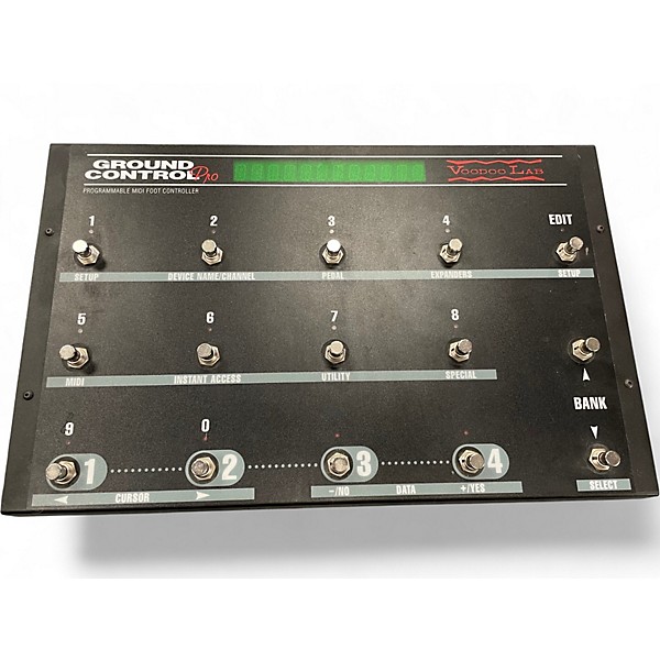 Take command of your rig with this used Voodoo Lab Ground Control Pro footswitch in great condition, built for reliable MIDI control on stage or in the studio. It features 12 rugged footswitches, a clear backlit display, and supports MIDI program changes and continuous controller messages for effortless preset and parameter control. Ideal for rack systems and multi-effects, it offers straightforward navigation and durable performance for players who need pro-level switching without the hassle.