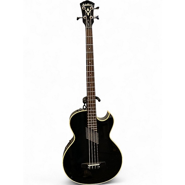 Used Washburn AB20 Black Electric Bass Guitar in good condition. This acoustic-electric bass features a sleek black finish, 34" scale length, and active electronics for versatile tone control. It includes a piezo pickup system and onboard EQ for shaping your sound. The mahogany body and rosewood fingerboard offer rich, warm tones and smooth playability, making it ideal for both studio and stage use. A solid choice for players seeking dependable performance and classic acoustic-electric bass tones.