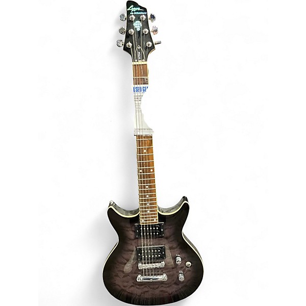 Used Washburn LYON LCT24 Trans Gray Solid Body Electric Guitar in Good condition. Features a sleek double-cutaway body, dual humbucking pickups for powerful tone, a 3-way selector switch, and a bolt-on maple neck with rosewood fingerboard. The eye-catching transparent gray finish highlights the wood grain, while 24 frets allow full-range playability. Ideal for players seeking quality sound and style at an affordable price. Shows light wear consistent with regular use.