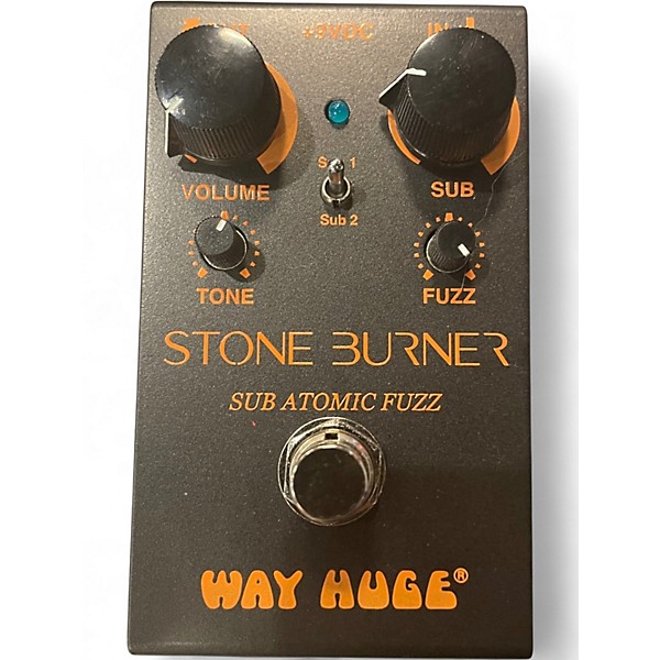 Used Way Huge Electronics Stone Burner effect pedal in excellent condition, delivering thick, harmonically rich drive with dynamic touch response for guitar or bass. Simple controls make dialing in everything from gritty edge to saturated fuzz-like sustain fast and intuitive. Built in a rugged stompbox enclosure for dependable stage and studio use, it features a standard 1/4" input and output and runs on 9V DC, pedalboard-friendly power.