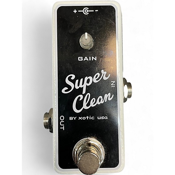 Used Xotic Super Clean boost pedal in Excellent condition, delivering transparent gain with plenty of headroom for pushing amps or sweetening your tone. Features up to +20dB of clean boost, internal DIP switches for EQ/voicing options, true bypass switching, and a rugged compact enclosure. Runs on standard 9V DC center-negative power for easy pedalboard integration, with low-noise operation ideal for guitars and bass.