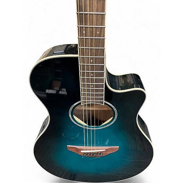 Used Yamaha APX600 black Acoustic Electric Guitar in Good condition, offering a slim-line cutaway body for easy playability and excellent comfort. Features include a spruce top, nato back and sides, and a rosewood fingerboard. Equipped with a reliable System65A preamp and built-in tuner, it's perfect for both stage and studio. Its 25" scale length and narrow string spacing provide smooth action, making this guitar a great choice for players of all levels. ERROR IN LISTING, Actual color is blue burst