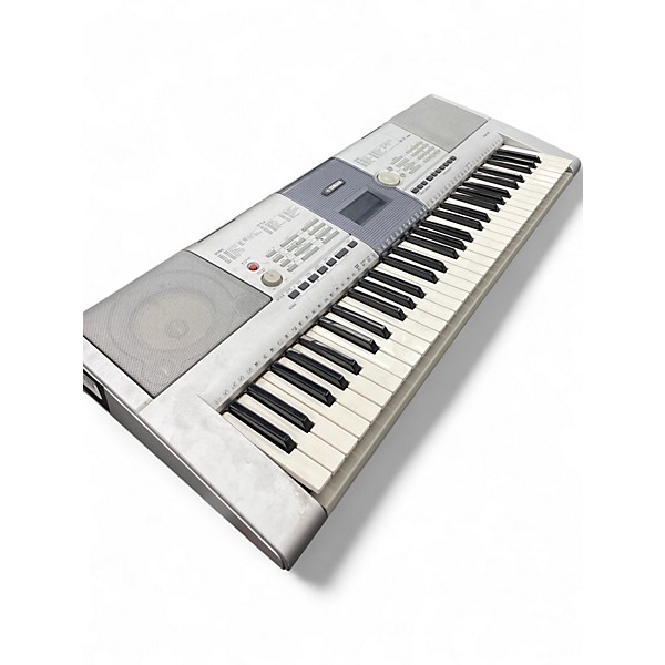 Used Yamaha PSR295 61-Key Portable Keyboard in fair condition, great for beginners or casual players. Features 61 touch-sensitive keys, 487 instrument voices, 106 accompaniment styles, and a 6-track sequencer for easy music creation. Built-in speakers and MIDI connectivity offer versatile use at home or in practice settings. Shows notable cosmetic wear but functions as intended, making it a budget-friendly choice for anyone looking to explore music without breaking the bank.