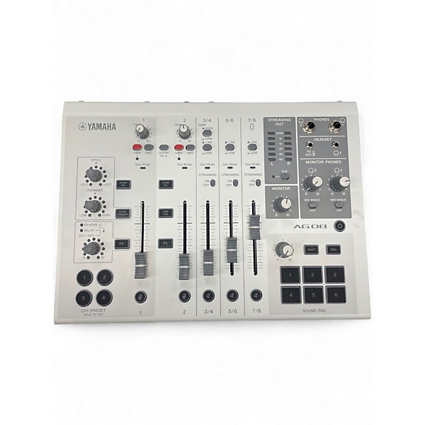 Used Yamaha AG08 digital mixer in great condition, built for streaming, podcasting, and live production. Compact 8-channel USB mixer with high-quality Yamaha preamps, onboard DSP effects (EQ, compression, reverb), and flexible routing for quick setups. Offers USB audio interfacing for seamless computer connectivity, multiple mic/line inputs, and dedicated faders for smooth, hands-on control. Clean, reliable performance in a portable desktop format, ready to elevate your audio workflow.