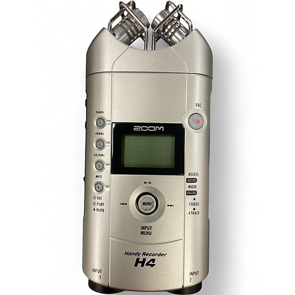 Used Zoom H4 Handy Recorder in good condition offers professional-quality 24-bit/96kHz stereo recording and 4-track multitrack capabilities. It features built-in X/Y stereo condenser mics, dual XLR/TRS combo inputs with phantom power, and records directly to SD cards. Ideal for musicians, podcasters, and field recorders, the H4 delivers high-quality audio capture in a portable, rugged design. This reliable recorder is ready to handle your creative projects with ease and precision.