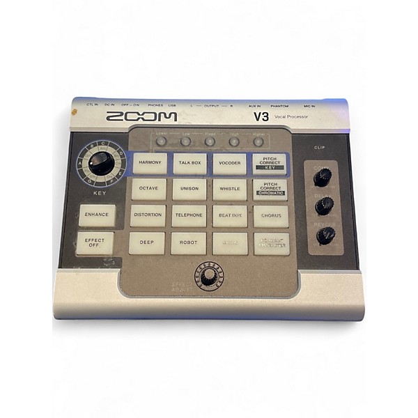 The used Zoom V3 Vocal Processor is in great condition, offering 16 versatile voice effects including harmony, pitch correction, and delay. Ideal for live performance or studio use, it features a built-in compressor, reverb, and three-part harmonies. Powered via USB or 9V adapter, it also has an XLR mic input with phantom power, headphone out, and USB audio interface capabilities, making it a compact, all-in-one vocal solution for singers and content creators.