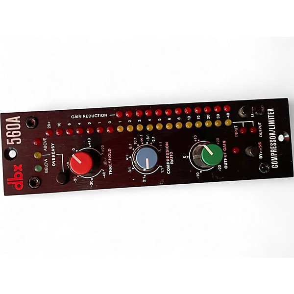 The used dbx 560A Compressor delivers classic dbx VCA compression in a compact 500 Series format. With switchable OverEasy® and hard knee compression, threshold range from -40dBu to +20dBu, and ratio settings from 1:1 to ∞:1, it's perfect for dynamic control in studio or live environments. This unit is in great condition and provides transparent, musical compression ideal for vocals, drums, and instruments, maintaining the legendary performance dbx is known for.