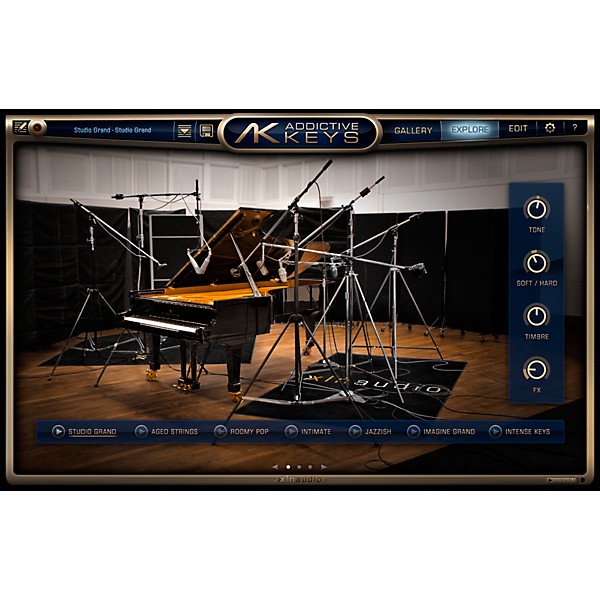 This software makes it possible for us to offer the complete setup used to record the instruments. Any 3 of the recorded perspectives are selectable and tweakable on separate channels in Addictive Keys.