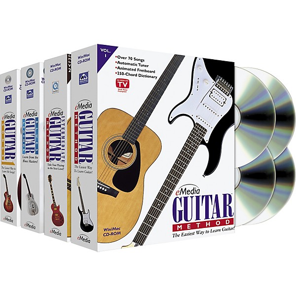 If you've had a guitar sitting in your room collecting dust because you could never get past one note plucks, these four CD-ROMs from eMedia will expand your musical world by leaps and bounds.