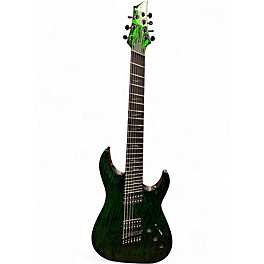 Used Schecter Guitar Research silver mountain c7 ms Black and Green Solid Body Electric Guitar